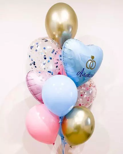 Цветовая палитра шариков обширна: яркие матовые или глянцевые, прозрачные, с орнаментами, в оттенке «металлик», «хром», «жемчуг», «пастель» или («макарунс»). Наши аэродизайнеры подберут идеальное и оригинальное сочетание, ведь ваша свадьба не должна оформляться по готовому шаблону.